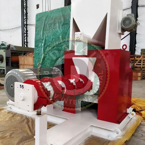 Material such as soyabean to be processed, is first passed through magnetic separator and cracker before feeding it into screw hopper, from screw hopper its fed to driven element of extruder via variable speed screw. In extruder, properties of soyabean are changed due to mixing, kneading and cooking action of extruder. There are many variables such as speed, feed, double fly & single fly worm, steam lock sizes etc. to control properties of materials.