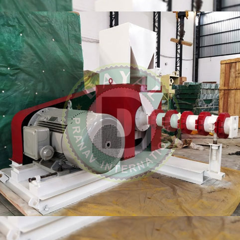 Material such as soyabean to be processed, is first passed through magnetic separator and cracker before feeding it into screw hopper, from screw hopper its fed to driven element of extruder via variable speed screw. In extruder, properties of soyabean are changed due to mixing, kneading and cooking action of extruder. There are many variables such as speed, feed, double fly & single fly worm, steam lock sizes etc. to control properties of materials.